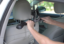 Back Seat Butler™ however, bringing clothes in your vehicle should be a much easier experience. As seen on www.backseatbutler.com, all you need to do is snap the Back Seat Butler onto the headrest of your vehicle's seat. Once secure, simply flip up the hanger arms of the product and you can now store your clothes easily. The large hanger arms can be used to hang one or two pieces of clothing in a very neat manner, ensuring that your clothes will not get wrinkles when in the car. Also, each hanger arm features 3 hooks on each side which you can use to hang clothes off of, or grocery bags if you wish. Reviews also love that the Back Seat Butler's height can easily be adjusted to accommodate for longer pieces of clothing as needed. Also, since the Back Seat Butler is tucked behind your vehicle's seat, it will not cause any blind spots while driving. The Back Seat Butler is definitely a must have if you do a lot of traveling with your car as it is not only a great clothing organizer but an effective general storage solution as well.