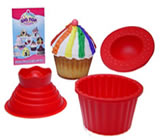 Big Top Cupcake? Now you can bake a cupcake 25 times its normal size, and a hundred times more fun than an ordinary cake. This is possible with Big Top Cupcake, the only way you can make a giant cupcake that is perfect every single time. The Big Top Cupcake kit includes a silicone bakeware, non-stick top mold, bottom mold, and removable inserts that measure approximately 6-1/2 inches in diameter by 7 inches in height. Amazing. With this Big Top Cupcake set you can be the maker of an awesome cupcake that will awaken wonderment in your children and impress your guests. They will think you took hours to make your Big Top Cupcake, when all it really took was the Big Top Cupcake set, your talent and imagination. The designs can vary from a pretty pink house to a mischievous chocolate cat. Or it could be a carnival tent or a beehive. It is all up to you and what you decide, with the help of Big Top Cupcake. And with its removable insert you can add your favorite filling whether it is pudding, ice cream, whipped cream, candy or anything. This product is dishwasher safe, heat resistant up to 500 degrees, non-stick and easy to release. It’s colossal. It’s over the top. It’s Big Top Cupcake.