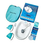 A kit includes the D-tox spa bowl and array, timer control unit, 30 bowl liners, 100 gm low sodium salt, a measuring spoon, nylon storage bags, and an instructional DVD and manual.