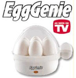 Egg Genie™, the automatic egg cooker that lets you cook hardboiled, soft-boiled and medium-boiled eggs to perfection every time. With Egg Genie, there's no mess, no inconsistency, and no lugging around heavy, hot pans of water. All you have to do is fill the EggGenie measuring beaker, pour it in the bottom of the Egg Genie reservoir, pierce each egg with the included piercing pin and set - that's it. You never have to worry about how long you have to cook your eggs, either, because the Egg Genie has automatic sound and light indicators to prevent overcooking. Best of all, you can cook up to 6 perfect eggs all at once. Does Egg Genie work? Yes! Review after review agrees: With Eggenie you'll enjoy protein-rich salads, tasty egg salad sandwiches, eggs Benedict and deviled eggs fast, easy, and perfect every time with the Egg Genie automatic egg cooker. Love veggies? You're in luck, because the Egg Genie also comes with a vegetable steamer tray so you can steam vegetables like carrots and broccoli for succulent side dishes. Buy EggGenie with vegetable steamer tray today, and you'll also get the original BaconWave. Cook crispy bacon without the fat and grease in your microwave with the Bacon Wave - a $20 value - yours free.