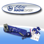 Elite Magnassager® delivers professional results with its unique magnetic massage balls - it's four spa treatments in one. The Elite Magnassager goes to work fast to relieve stress, soften aching muscles, soothe out foot pain and more. Used by rehabilitation professionals, world class pro athletes and anyone who needs to relieve stress and tension worldwide, the Elite Magnassager uses magnetic balls to simulate the kneading hands of a Swedish masseuse and increase circulation to encourage muscle healing and relaxation. Remove the magnetic balls and run hot water over them to melt your muscles with a deeply soothing massage. Use the Elite Magnassager's free attachments and enjoy acupressure or hand and foot reflexology. The Elite Magnassager is your all-in-one home spa solution - for less than you'd pay for two professional Swedish massages! Rid yourself of headaches with the massager, backaches with hot stone therapy, relieve stress with acupressure and soften hands and feet with reflexology - all in one ingenious massager! Give yourself relief at home, at work or on the road any time with the Elite Magnassager.