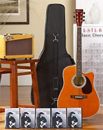 Esteban Master Class Guitar package! You get everything you need to become an advanced guitar player, complete with a classical wood Esteban guitar and a five-DVD course filled with lessons so you can learn with Esteban. The complete Esteban Master Class Guitar package features a stunning handcrafted cutaway guitar, polished to perfection. The guitar is both acoustic and electric, so you can play everything from classical guitar solos to modern rock rifts! A built-in equalizer adds professional taste and the included amplifier completes your guitar so you can play any time, anywhere. Be the guitar player you've always wanted to be with the five-DVD Esteban Master Class Guitar course packed with over 100 lessons from Esteban himself. Learn to play full songs on your very first day, and follow Esteban as he leads you from beginners' chords to advanced techniques for nimble strumming that'll wow your friends. Play like Estaban. The Esteban Master Class Guitar comes in a black or natural finish; and the complete 22-piece set includes a hard storage case. This is everything you need to learn and play guitar, approved and taught by the master himself, Esteban.