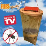 Flies Away™, the amazing new way to keep flies at bay night and day. If you've ever wanted to know how to keep flies away, you've found the answer. Legendary product pitchman Billy Mays says Flies Away is "the fastest, easiest, most effective way to make flies go away for good. It goes to work in minutes - they get in and but they can't get out!" The secret to FliesAway is a tough funneled lobster trap design and non-toxic biodegradable bait that attracts flies like magnets. Flies can't resist the stuff, yet it's safe for you, your family, and your pets. All you have to do is add bait to the Flies Away trap, pour in water, and then hang Flies Away. It's that easy. FliesAway goes to work immediately but lasts an entire 30 days, so it's perfect for your home and even to keep flies away from your out door cook out. Eco-friendly Flies Away has already been used by farmers, equestrians, restaurants, and even the military to keep flies away from food and people - now it's time to use Flies Away to keep flies away from you. Incredibly, each Flies Away trap gets rid of over 60,000 flies. Clean up is a cinch, too, since you can simply toss the entire Flies Away trap and hang a new one. Nothing could be easier. Order Flies Away today, and you'll get a second Flies Away absolutely free. Plus, if you order right now you'll get a third Flies Away free - that's an entire summer fly-free for one low price. Eliminate the aggravation and eradicate flies forever.