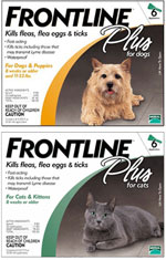 Frontline Plus®. Frontline Plus isn't like spray medicine or the many imitators on the market. Instead, it's waterproof so it doesn't wear off and it lasts a full 30 days between applications. In fact, dogs whose owners give them the #2 flea and tick control treatment have fleas after just one week; but dogs who get Frontline Plus have no fleas one week, two week, three weeks and even four weeks later. That's the Frontline Plus advantage! Frontline Plus is easy to use, too. Simply pop the end off of one of the pre-filled disposable applicators, place it between your dogs or cats shoulder blades, and part the hair as your squeeze the applicator and run it down the middle of the back to the base of the tail. That's all there is to it, and best of all you only have to use FrontlinePlus once a month for year-round flea and tick control your pooch or puss will love you for. There's a reason veterinarians choose Frontline Plus flea and tick control for their own dogs and cats - it's fast, easy, long-lasting - and it works. Stop wasting money on ineffective treatments and medicine, eradicate fleas and ticks from your home and give your dogs and cats sweet relief.