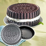 Here is a fun way to make a cake that looks like a big Oreo cookie! The