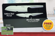 Gotham Steel Pro Cut™ is the knife set that you will want to get. The Gotham Steel Pro Cut knives are made out of 100% Japanese that are not only optimally sharpened but are guarantee to be so durable, they can last you a life time of use. As seen on www.gothamknife.com, what this means is that you will not need to replace GothamSteelProCut like you would conventional knives that you can get today. Along with the razor sharp blades and the amazingly balanced design of the Gotham Steel Pro Cut, the knives also feature easy-slice scallops that are infused into the knives' design. These scallops ensure that there is an air gap between the knife blade and the food that is being sliced. This ensures that no food will stick onto the Gotham Steel Pro Cut knives as you use them, allowing you to cut, slice or chop food with minimal effort and with a lot less time involved. With the Gotham Steel Pro Cut, you are guaranteed to notice a positive improvement in your food preparation efficiency.