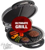 Hulk Hogan™ Grill lives up to its name. It is powerful, multitasked and healthy. Imagine the things you can cook with this Hulk Hogan Ultimate Grill. Flavorful cheeseburgers, Panini sandwiches, quesadillas, plump and juicy hotdogs, frozen steaks cooked to perfection in just 20 minutes. Did you hear? Just 20 minutes and they were frozen. And here's the kicker-it cooks great desserts, too. This is one grill like no other, it is Hulk Hogan's Ultimate Grill, which is also multitasked. Its ultimate, extra large interchangeable plates can easily transform your Hulk Hogan into a skillet, waffle maker, buffet warmer, Panini sandwich press, pizza maker, and then some. Imagine that. You have all these appliances in just one Hulk Hogan Ultimate Grill. No mess dealing with different items in one sitting. Best of all, the food is cooked with ultimate flavor. The secret is that Hulk Hogan cooks with mechanical pressure. If you just lock the lid instantly, this sears in the flavor and juices. You have evenly cooked food on both sides, every time. Plus, you can cook healthier meals with its two cooking surfaces and dual variable heat settings from 210 to 425 degrees. All excess fat falls into the fat trapper, and the unique floating hinge allows it to adjust to the size of the food. The dish is cooked to perfection every time, just the way you like it grilled. Reviews say this grill is perfect for offices, dorm rooms, and, more.