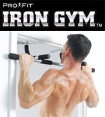 Iron Gym™, the multifunction home gym that quickly sculpts your upper body for pure lean muscle strength that shows. With Iron Gym strength training, you can forget about bulky and cumbersome exercise equipment that just doesn't seem to get the job done. Instead, you get rapid results from the IronGym's unique railings - simply wrap the railings around any door frame and Iron Gym leverages the weight so you can easily do pull ups and chin ups for strong, toned shoulders, arms, lats and back. Iron Gym is portable, too, and you never have to worry about installation - no screws, no nails, no damage. As seen on www.buyirongym.com and www.getirongym.com, the Iron Gym pullup bar has three different grips - narrow, wide and neutral - so you never have to worry about muscle apathy. You can always change your workout and challenge new muscles for maximum workout efficiency. Best of all, IronGym can be effortlessly lifted from the door frame and placed on the floor for deep push ups and an extended range of motion, and it can be used at the bottom of doorways for a perfectly-still sit up spotter. Iron Gym from ProFit gives you the strong, lean, chiseled arms, abs, obliques and triceps you've always wanted for that hot, steaming body the ladies have always wanted. And you're just 30 days away from real results.