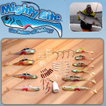 Mighty Bite™ is like a wounded bait fish that wonderfully works on all predatory fish. This is the only fishing lure system that lures the five senses of these fish. Just forget other lure systems. The main reason why the Mighty Bite was invented which is to taste, look and act just like a wounded bat fish.. This is the only attested lure system engineered to touch off and it t causes the fish to strike, bite strongly and get hooked. This will really work because the ish think that it's a real meal. Jeff Mancini designed this to really look like a bait fish. You'll really have to take a second d look at it or you could lure your own self into frying it .There are ten different sizes of Mighty Bite lures. Each one has a bite mark design in their ribs. There are other supplies available like scent sticks. The weight lines can be adjusted on your lines. If you wiggle Mighty Bite around the water, it will utter sounds like a fish .The scent sticks makes them smell like a wounded bait fish . Try it, it works great and it will surely lure any fish because it is irresistible.