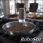 RoboStir™. Kiss stirring goodbye with RoboStir. It works in any pot or pan. And, it is specially designed so that you are certain it is covering every inch, all the way to the bottom of the pan. That is because of RoboStir’s amazing silicone feet which even get up on the edges to make sure that nothing sticks. Amazing, right? Truly, nothing is left unstirred thanks to RoboStir. RoboStir is so durable that it works even in boiling water. This robostirer is 100% water proof and is battery operated so you can just leave it in the pot. It can stir up to four hours and withstand heat up to 572 degrees. Use your RoboStir for soups, stews, beans or marinara. It even has the strength to fold alfredo. The secret lies in the orbital gyroscopic action of the stirer. While the Robo stirs you can chop vegetables. What a pal.