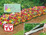 Roll N Grow™, the miracle flower mat. Just roll out the flower mat, water it, and watch as thousands of flowers grow wherever you want them. Brighten up your shady grass areas, make window boxes quickly and easily, and plant entire flower gardens in a snap. Review after review agrees: Roll N Grow is the quickest and easiest way to play your flowers, bar none. You can cut RollNGrow just like cloth, so it's easy to make custom-fitting mats for plant pots or window boxes. You can also cut it in half and get up to 20 feet of edging for your driveway or walk. Each Roll N Grow floral mat has over one thousand seeds and all the nutrients to blossom into a rainbow of incredible flowers. The seeds include favorite flowers such as Baby's Breath, Scarlet Flax, Crimson Clover, Calendula, Cornflower, Larkspur, and Poppies. Cut and place or just roll and grow; either way, gorgeous blooms will surround you in just weeks with minimal effort. Roll N Grow is also biodegradable, environmentally friendly, retains water and stifles weeds, which means less work after they grow. Beautiful flowers can be yours quickly and easily; just roll, water and grow to enjoy your wonderful garden. Order now to double your 1000-seed, 10-square-foot Roll N Grow, and get 2000 flowers in 20 square feet! This offer is not available in stores, so order your Roll N Grow garden today.