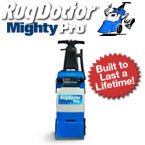 Rug Doctor® has long been the best name in carpet cleaning with their motto "Steaming Mad at Dirt." Now you can buy and not just rent the Rug Doctor Mighty Pro machine for yourself. Think of all the money you can save on rentals by buying a real Rug Doctor carpet steamer. The RugDoctor Mighty Pro is the same piece of equipment used by the professionals. The motto of this machine is "Built to Last a Lifetime." A carpet cleaning machine needs to be a solid investment. Review the blue RugDoctor MightyPro and compare it to other steam and dry host carpet cleaners such as Bissel, Hoover, Resolve, Phoenix, Stanley, Shark, Euro Pro, Eureka, and Dirt Devil. As proof that the Rug Doctor Pro really works, read this review and testimonial from apartment building owner Ray Jones: "I got tired of the machines I was using breaking down. They don’t have near the power of the Rug Doctor." Even though the Rug Doctor Mighty Pro is a commercial-grade carpet cleaner, it is easy to use and move around. It even has a pull down handle for easy host storage and comes fully assembled.