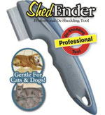 ShedEnder™, the new and easy way to clean pet hair before your dogs or cats shed it all over your home. Shed Ender is like a pro grooming comb, but has tips specially designed to pull loose hair out of your dogs or cats coats before it’s shed; leaving your pet with a healthy coat and your house clean and fur-free. Your pet will love the massaging effect of the Shed Ender brush, and you’ll look like a pro groomer and have a clean house in no time. Shed Ender is the only professional de-shedding tool that completely grooms your pets undercoat and removes shedding hair at the source. Order ShedEnder now and you’ll also get the Lint Wizard – a revolutionary tool that quickly and easily removes hair and fur from clothes and furniture. The Lint Wizard is different from other lint removers because it actually cleans itself – just twist the lint remover and it deposits all the lint, hair, and fur into a convenient trap, and then simply empty the trap over a trash can. Get rid of your home’s pre-existing hair, and prevent more hair from accumulating with this amazing Shed Ender and Lint Wizard combo pack. Shed Ender is not available in stores, and supplies are limited, so order now to have a hair-free home forever – without having to keep your pets off the furniture.