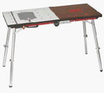 Skil® X-Bench, the ultimate in work bench portability. Skil X-Bench was engineered by one of the most trusted names for over 8 decades to quickly and easily provide a robust work bench at your job site - whether it's your garage, a bedroom, a friend's house or even your mother-in-law's. The sturdy steel structure comes loaded with accessories so you can use your favorite power tools on the go. Best of all, the lightweight Skil XBench folds up to about the size of a suitcase - and at under 50 pounds, you can just grab and go. And, it only takes about 25 seconds to set-up so you don't have to waste time to save time. Skil X-Bench is a 6 in 1 solution that converts to a drill press, a jigsaw, a belt sander, a downdraft table, a cut-channel and a router! For example, you can quickly and easily pull out the universal insert plate, attach your router and the included router fence, and voila! You have a router table! Skil XBench also comes loaded with accessories like clamps to make your job easier, no matter where you are. And the ingenious SkilXBench cut-channel lets you forget about sawhorses and skillfully cut your own wood yourself - without needing an extra set of hands. If you're tired of wasting time driving between the project site and your workshop, you need Skil X-Bench - it's your work bench in a suitcase! As seen on the TV commercial/infomercial with Beau Rials and Tracy Metro. Take your tools with you with Skil X-Bench.
