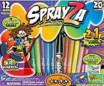 Sprayza™, the revolutionary new kid-powered airbrush system that puts the 'fun' back in art 'fundamentals.' Sprayza is not paint, and it doesn't use batteries. Instead, your budding artist simply inserts his or her favorite marker into the Sprayza Color Tool and blows through the tube to airbrush amazing patterns and designs. It's safe, it's fun, it's easy – it's a kid-powered airbrush. Sprayza comes with 2 Sprayza Color Tools, 12 amazing markers, and 20 reusable stencils for hours and hours of laughter and fun. When your kids are done, they can pack the entire Sprayza system away in the special Sprayza storage pouch – perfect for storage at home and taking Sprayza with you on the go. Try Sprayza now and you'll also get Dotza, the incredible color pens with patterned style. Your little artist will love the magical dimensional effects they'll get when they dot... dot.. Dotza their way around 60 reusable creation images. Give your kids artistic inspiration with Sprayza and Dotza. Order right now and you'll get 2 Sprayza Color Tools, 12 amazing markers, 20 reusable stencils, 12 Dotza color pens, 60 reusable creation images, and a convenient storage pouch for non-stop fun that inspires.