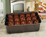 The Perfect Meatball™? First, The Perfect Meatball is not fried over lots of fat producing bad body cholesterol. Instead, The Perfect Meatball is delicious, healthy and baked in a convenient, non-stick pan. You are given a lean and tasty meatball without the bad cholesterol, too. The Perfect Meatball pan works with any recipe, and with any sauce, for example Swedish style meatballs and brown sauce. Even frozen meatballs do well here. The secret lies in the construction of the pan, which has a handy insert so the meatballs are suspended in air and evenly baked on all sides and from every direction. At the same time, fat from the meat sifts through the grill insert and falls to the bottom of the nonstick pan. You end up with delicious, tender and juicy meatballs that can even be sliced in half with a calling card to prove its tenderness. Even better, because the pan is non-stick, the fat from the meatball easily pours into a glass. Cleanup is easy because the pan can be safely placed in the dishwasher machine. This pan is multi tasked and can be used with chicken wings, baby back ribs or bacon, baking them more healthily for your entire family. The Perfect Meatball package comes with a Perfect Meatball recipe guide.