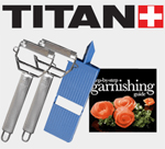 Titan Peeler™. Why is the Titan Peeler so much better and easier than any other peeler you might have in your kitchen drawer? The stainless steel Titan Peeler uses a twin action blade that work in either direction for fast peeling of all kind of vegetables. The quickness of the Titan Peeler even means tear-free peeling of onions! And the Titan Peeler employs microblade technology, which ensures that only the peel will be removed-not any of the rest of the vegetable. That means less food waste in your cooking. The slicing board turns TitanPeeler into a mini-slicer that gets your vegetables cut with the same thickness every time. This is the perfect kitchen tool for potato, carrot, onion, cheese, cucumber, tomatoe-any vegetable you would want to peel or slice. The practical design of the Titan Peeler makes it easy to grip and helps prevent accidents from slipping. The free garnishing guide and the Julienne blades of the TitanPeeler gives your food an appetizing appearance as well. So does Titan Peeler really work? Read this glowing review from user Alicia S. of Portland, Oregon: "The Titan Peeler has made my cooking faster and easier. What took me half and hour before now only takes five minutes! I would definitely recommend it to my friends."