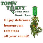Topsy Turvy™, the revolutionary way to grow those same fresh, delicious tomatoes without all the hard work. Topsy Turvy is a tomato planter that literally grows your tomatoes upside down. Topsy Turvey is so simple to use, you just place your tomato seeds in the mesh Topy Turvy bag, fill it with soil, hang it from any hook and water - that's it! Sunlight will naturally filter through the mesh Topsey Turvy bag and you'll actually get ripe tomatoes a full 4 weeks before everyone's garden-planted tomatoes are done because your tomatoes will have the perfect mix of light, water, and nutrients. A single TopsyTurvy yields tomato plants up to 30 pounds. Topsy Turvy will hang anywhere you have a hook: porches, decks, patios, condos, and even apartment balconies - so anyone can enjoy rich delicious tomatoes year-round. Even better, Topsy Turvey can also grow cucumbers, zucchini, herbs, and peppers - plant and cultivate an entire garden without all the hassle. You'll get the complete TopsyTurvey upside down tomato planter, a 4 Seasons Tomato Recipe Guide to preparing great tomato-based dishes all year round, and a bonus kitchen tomato slicer so you can get even cuts every time. Even better, if you order right now you'll get a Vertical Strawberry Planter and a Recipe Guide - absolutely free! Forget about digging, weeding, and the backbreaking work. Enjoy delicious tomatoes the easy way with Topsy Turvy.