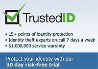 Trusted ID®, the identity theft and fraud protection company that keeps you and your assets safe, online and off. The reviews speak for themselves - Trusted ID has protected many people just like you through specialized service programs like placing Fraud Flags on your credit card accounts and through Trusted ID's robust Black Marketing internet protection. Don't fall victim to online pirates and thieves, and never be swindled by unscrupulous vendors with Trusted ID - identify theft protection that keeps you safe before you're attacked. Ask any victim of identity theft, and they'll tell you how hard it is to repair your credit history - even if fraudulent charges are not your fault. With TrustedID, this is not an issue - you can rest easy knowing your assets and your family are safe from harm. Get protection today - before it's too late - with Trusted ID. Try the