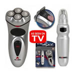 ZX4 Shaver™. This shaver has stainless steel blades that can shave your beard, sideburns, mustache, and trim your ear and nose hairs. Plus, it is so lightweight and compact that it can go everywhere, whether to the office or when you travel. The secret behind the efficiency of the ZX4 Shaver is its revolutionary 4-head shaving system, ergo four stainless steel blades housed under safety screens. You get an extra close shave without nicks or cuts, and can cut more hair with fewer strokes. At the same time, it melds to the contours of your face. Its ergonomic design fits snugly in your hand. The ZX4 Shaver has a full width pop-up trimmer for grooming sideburns, mustaches, and beards, plus a built-in charge indicator so that you will know in advance when it's time to recharge. It is a cord/cordless operation with an included A/C adapter. The rotary ear and nose trimmer trims the nose and ear hair on contact with precision. It is easy to use and safer than scissors, and its shielded stainless steel blades touch only the hair, protecting delicate skin tissue. Even better, it is easy to clean--simply immerse the tip in water while the unit is on. Finally, Bell and Howell's Shaver uses one AA battery (not included). End result--a clean, close shave every single time.